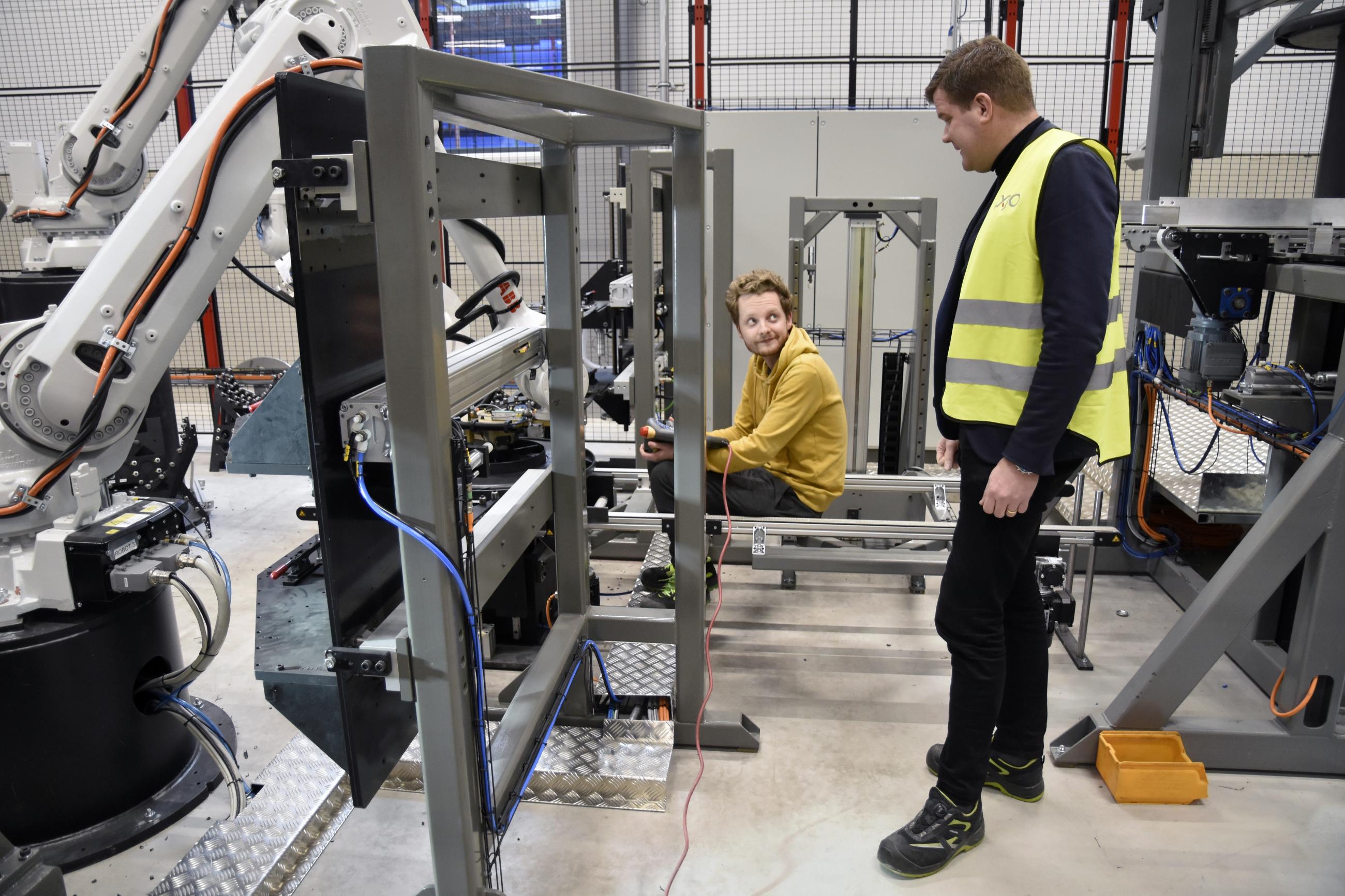Programmering pågår i den nya helautomatiska monteringslinjen för Axjos kabeltrummor. Tillväxten är stark inom kundsegment som behöver emballage till 3D-print, fiberkabel och kabel för elbilar.