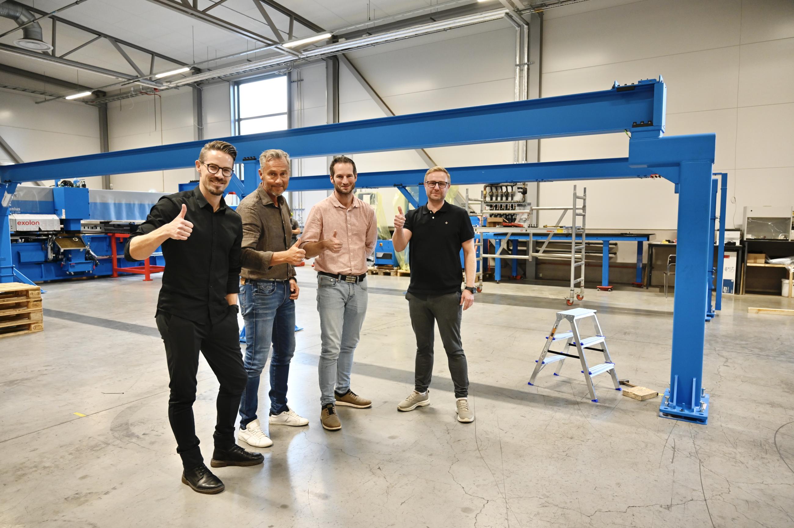 Installation pågår. ”Det har varit ett rekordår med investeringar” konstaterar fr v Morgan Ström, Ola Holm, Joel Torén och Christian Karlsson.