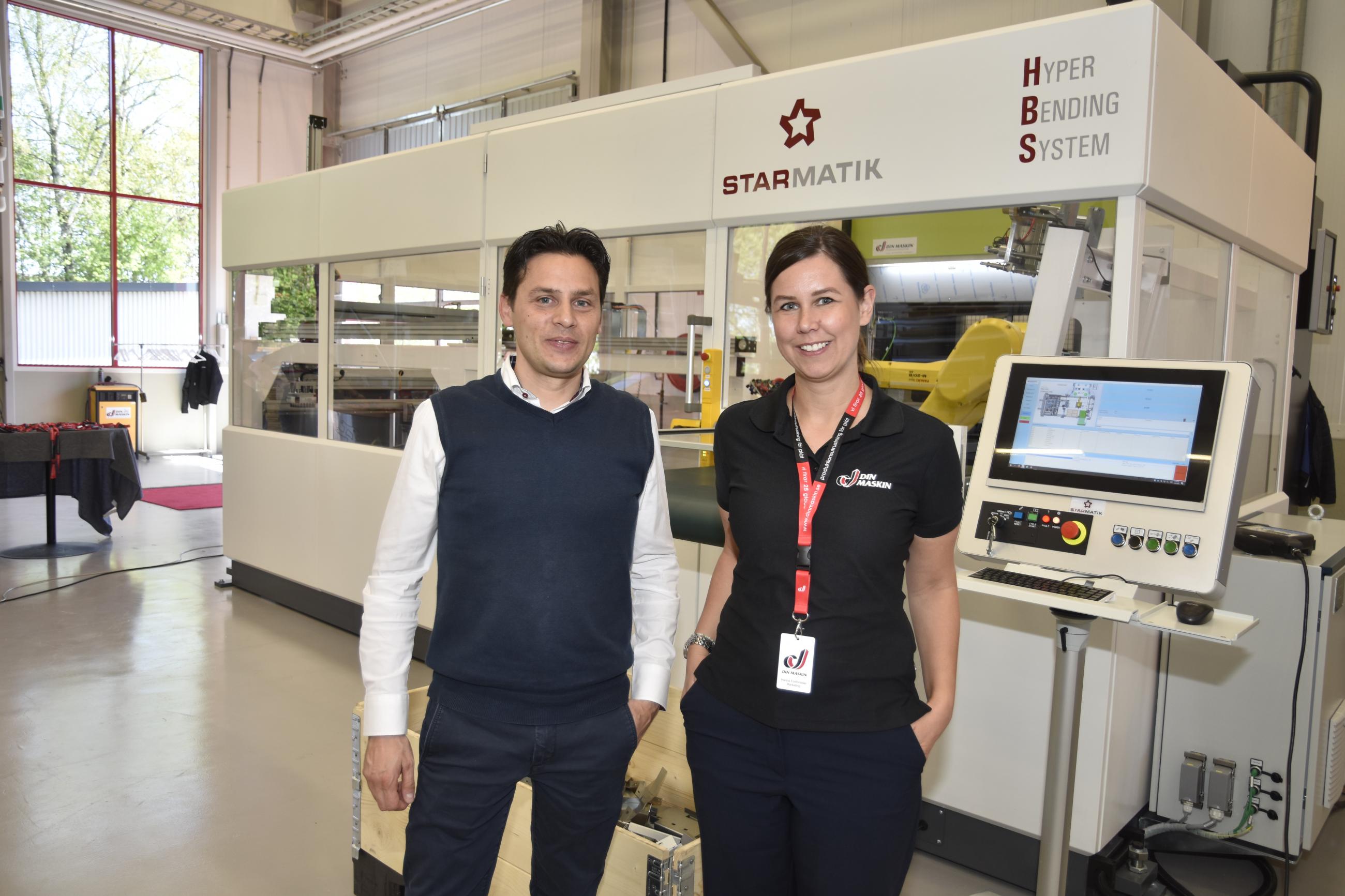 Den nya produktionscellen kombinerar en 40 tons Safan Darley med automation från Starmatik. Massimo Modolo, Starmatik, och Hanna Forthmeiier, Din Maskin.