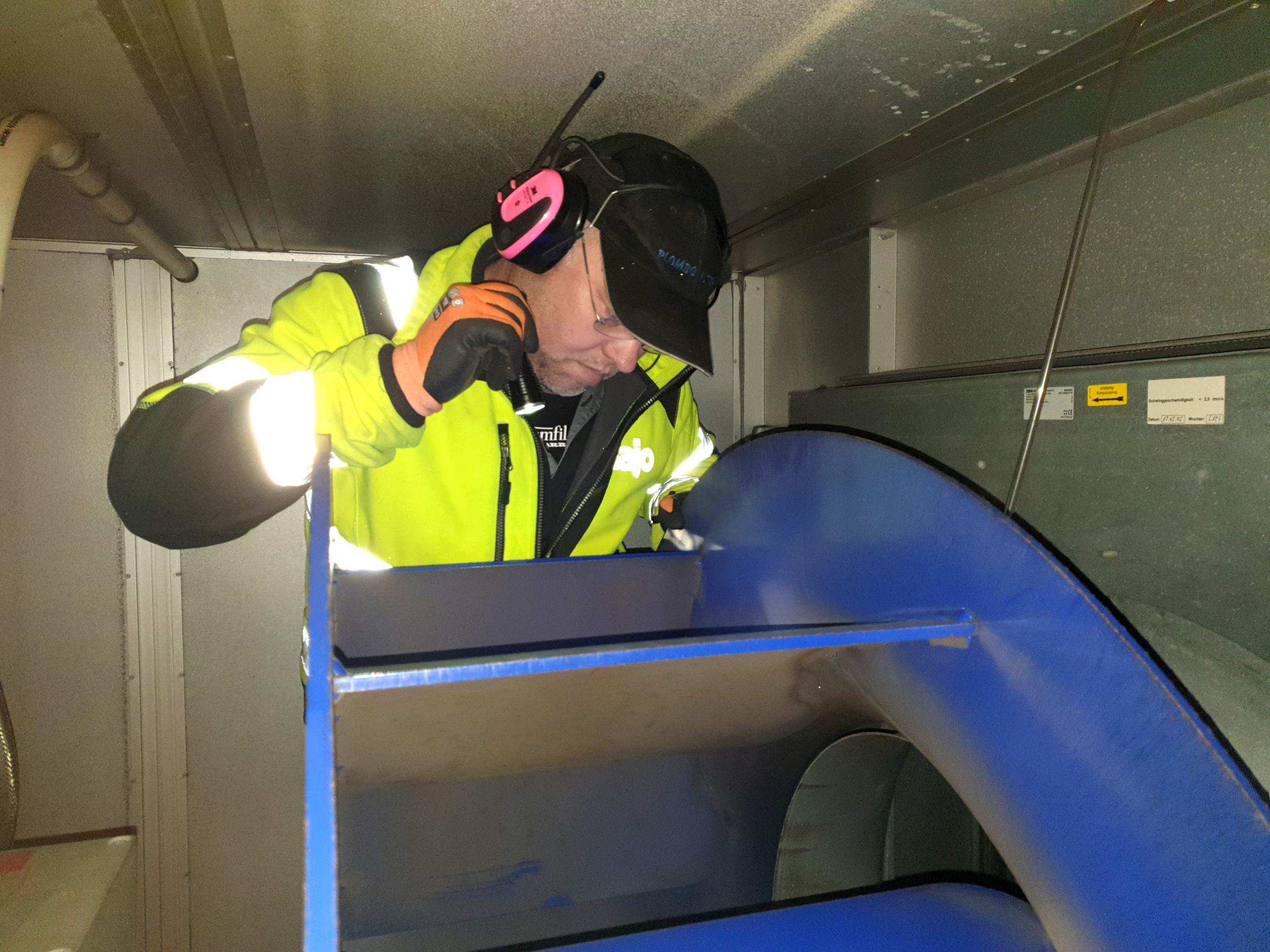 En viktig del av energiarbetet är att också ha koll på klimat, kyla och ventilation. Anders Nilsson, serviceledare, är certifierad för OVK, obligatorisk ventilationskontroll.