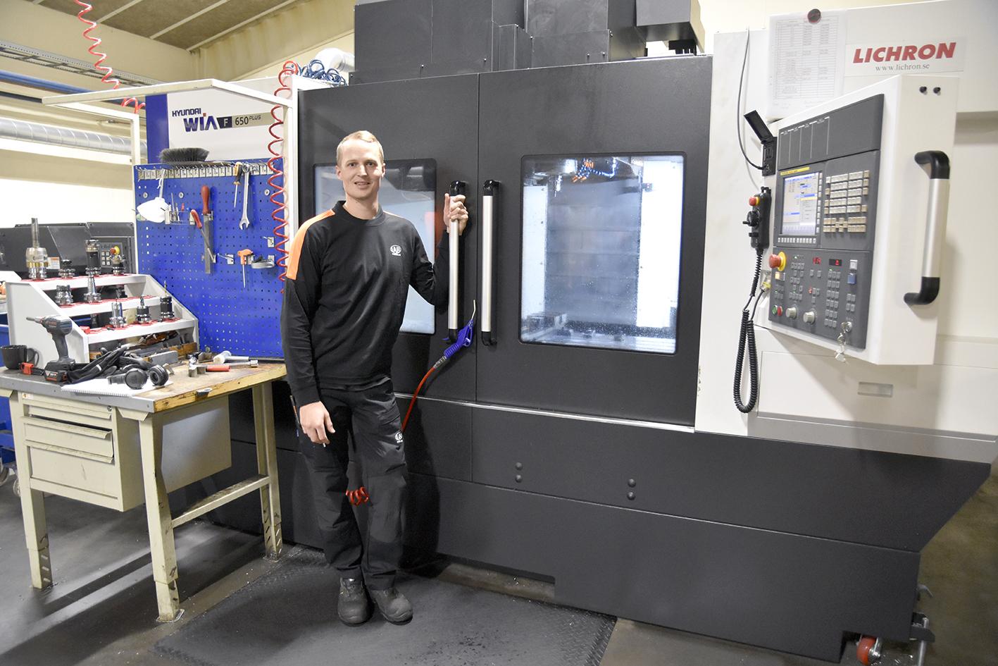 De senaste åren har man växt både med personal och nya maskiner. Jacob Åsberg är NC-operatör.
