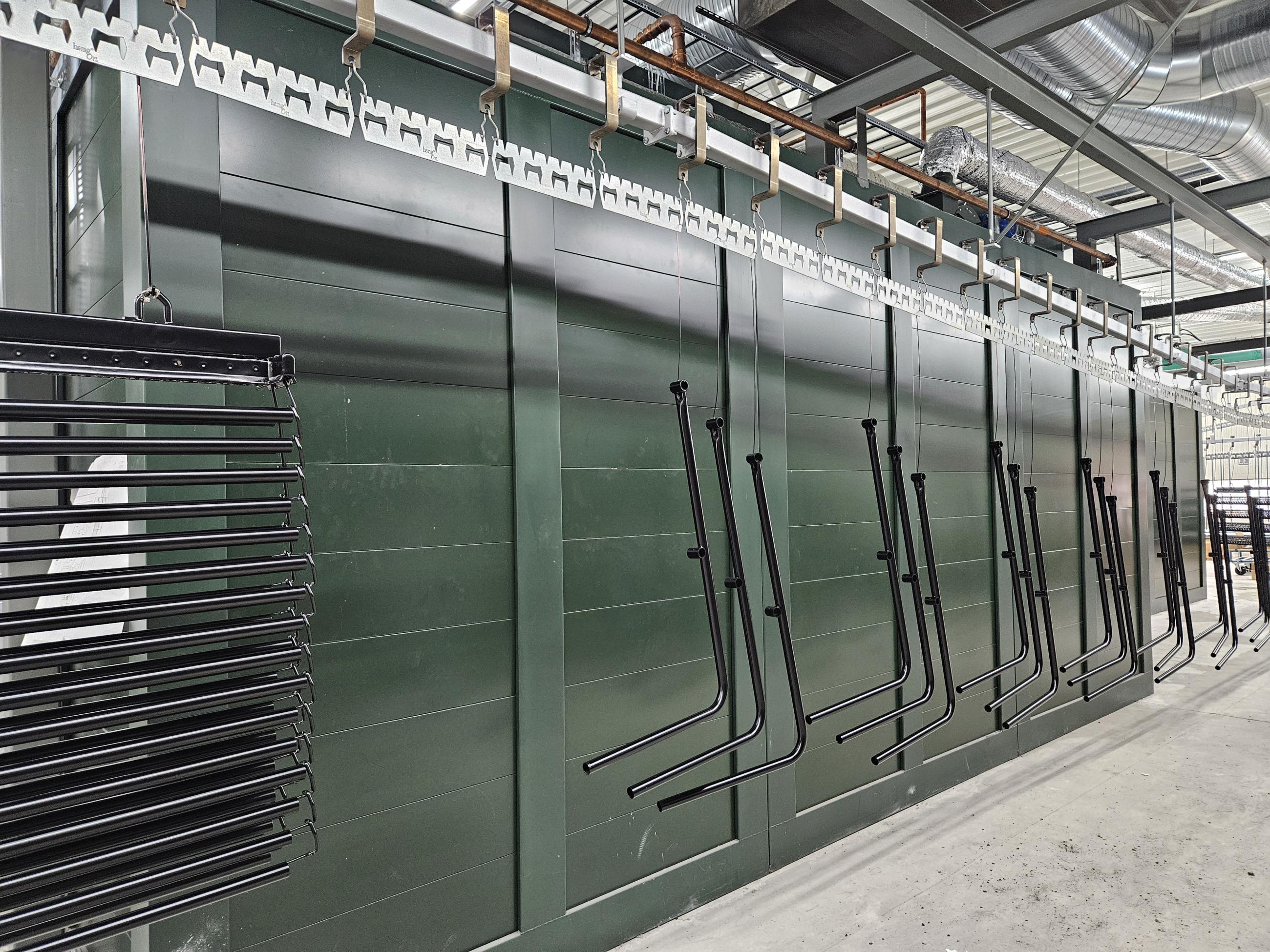 Här testkörs en komplett pulverlackeringsanläggning som konstruerats, byggts och levererats av Icotron i Skillingaryd.