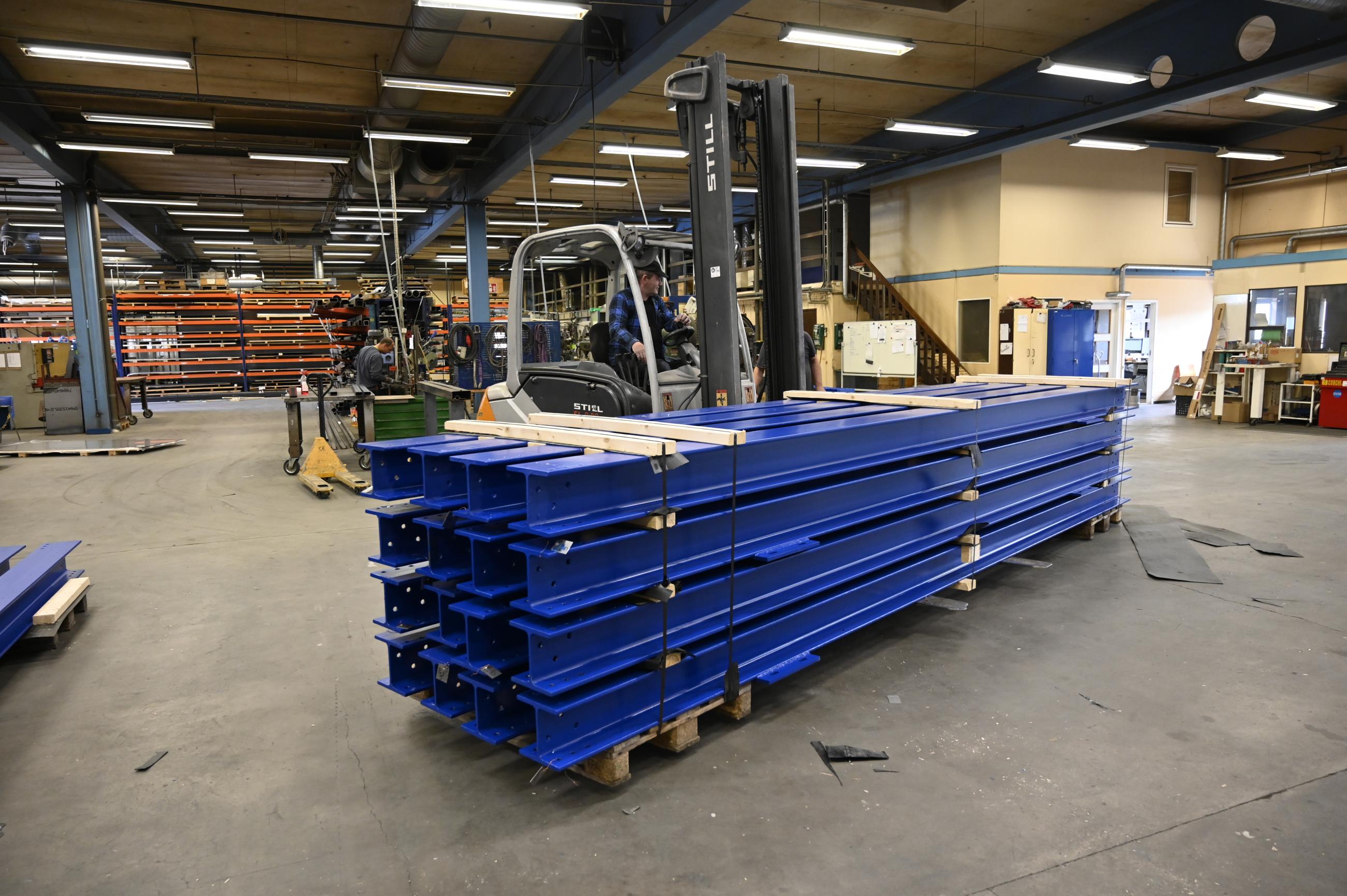 Här pågår volymproduktion i ordets rätta bemärkelse – med riktigt stora detaljer. I det här fallet delar av ett åkbanesystem som ska levereras till en kund i Tyskland.