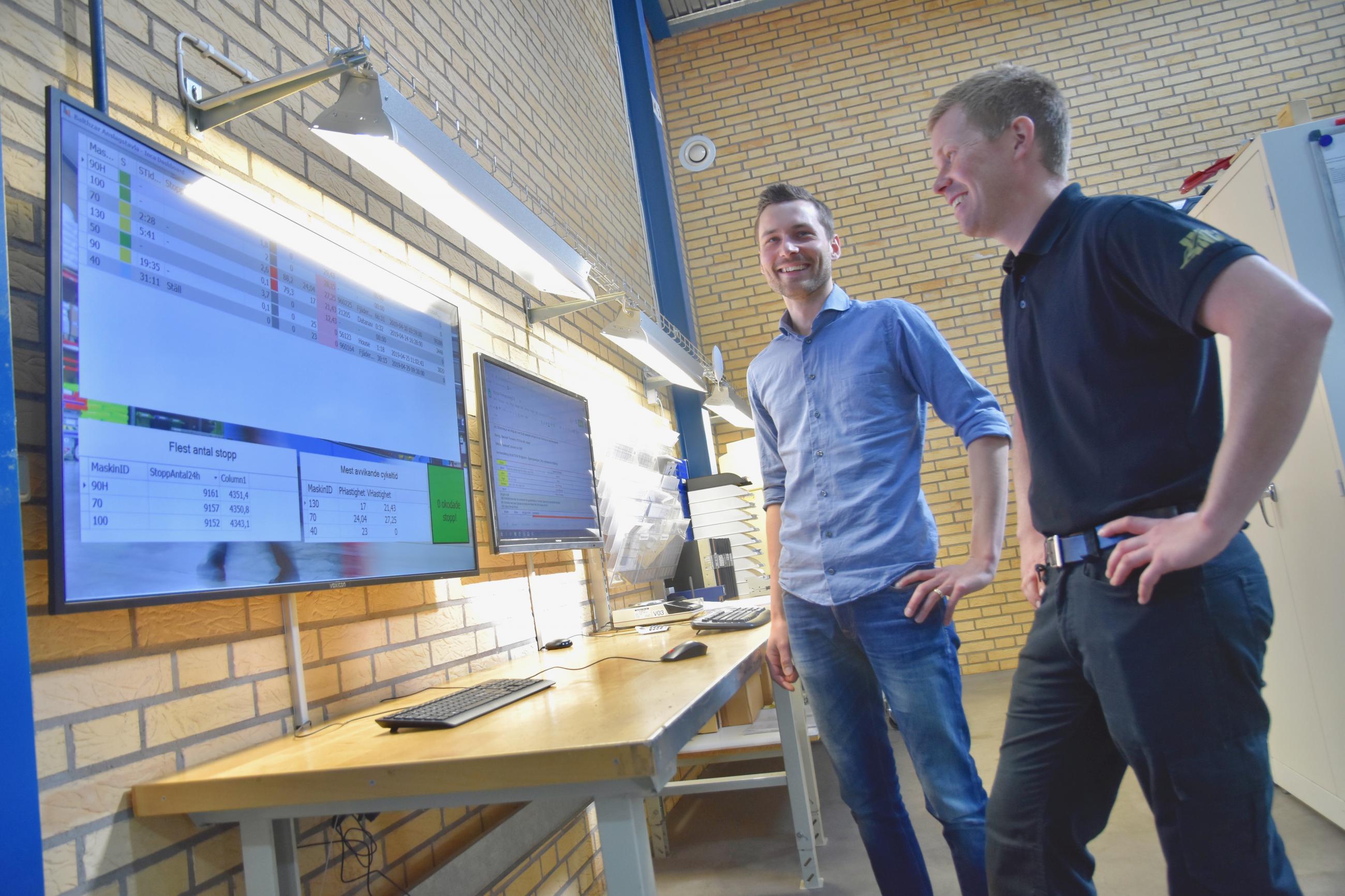 VD Edvin Lindqvist och produktionschef Andreas Lindh är nöjda med investeringen i maskinuppföljningssystemet Baltzhar.