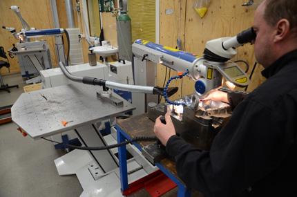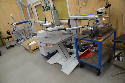 Han visar stolt de två semi-mobila och helt digitalt styrda svetsenheterna som nu är i full gång. En av enheterna av äldre modell har man själv byggt om genom att investera i ett helt nytt svetsbord med tredimensionell styrning. Den andra svetsenheten är en nyinvestering med 300 W högfrekvenslaser.