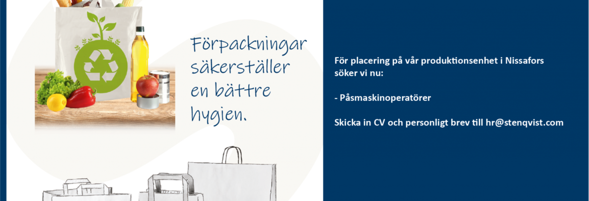 För placering på vår produktionsanläggning i Nissafors söker vi nu Påsmaskinoperatörer