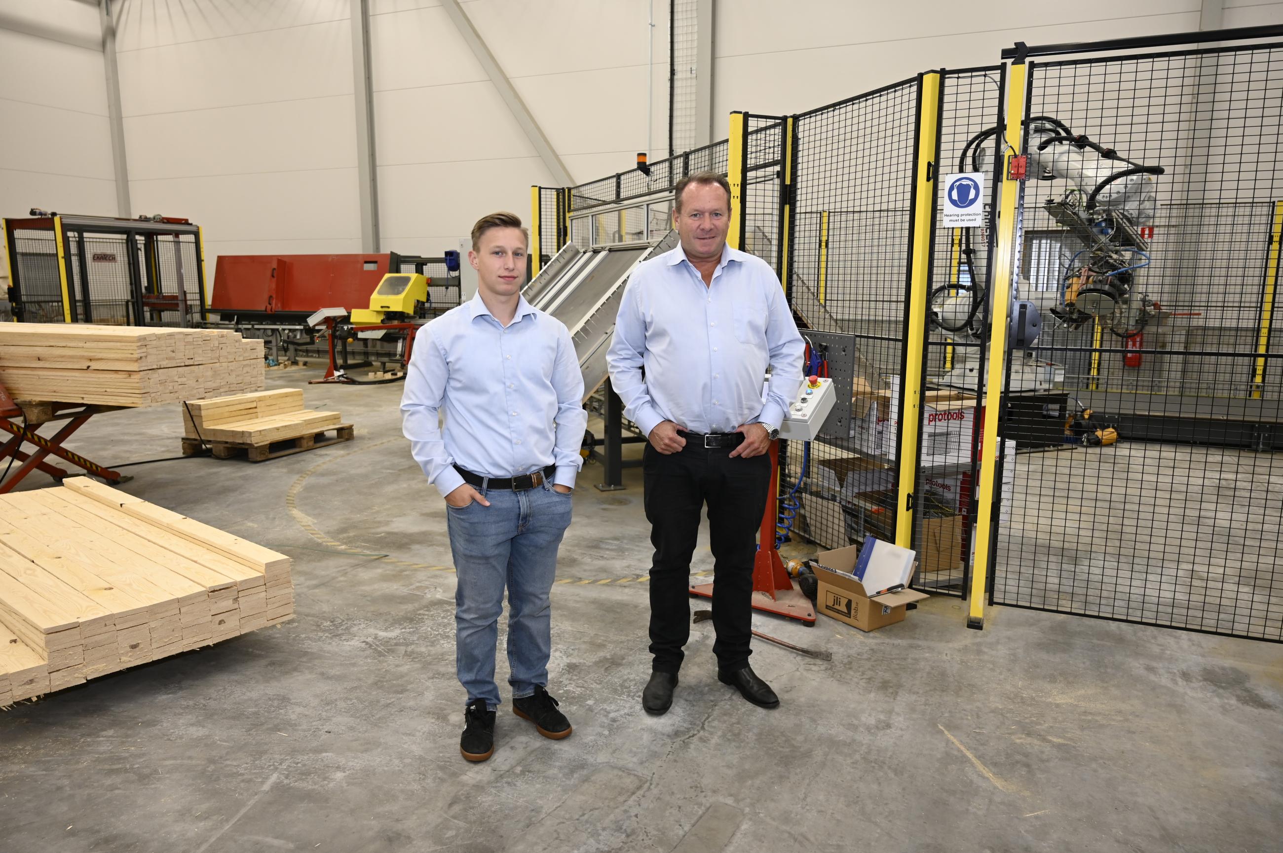Robotcellen stärker Ji-Ma:s kapacitet för småserier och andra pallformat, berättar (tv) Jedd Malmström och Olle Malmström.
