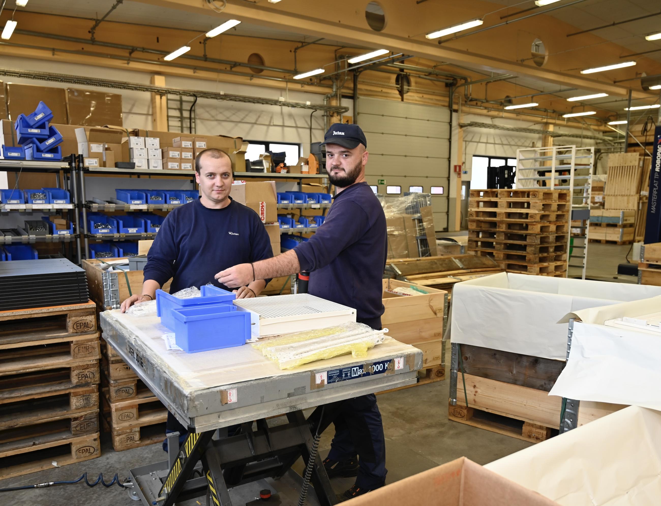 Bröderna Ioan och Marian jobbar med montering och logistiktjänster i Jutex nya center.
