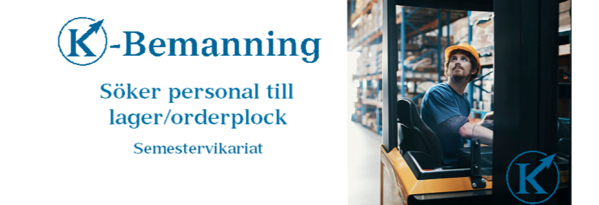 Urval sker löpande så ansök snarast på vår hemsida: https://www.k-bemanning.se/lediga-tjanster/lager-orderplock/