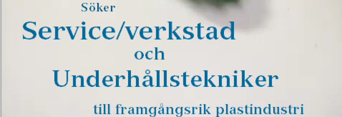 Nu söker vi en underhållstekniker till framgångsrik plastindustri