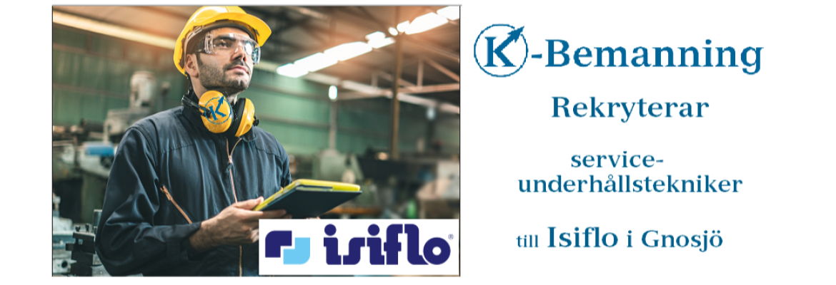 Välkommen in med din ansökan: https://www.k-bemanning.se/lediga-tjanster/service-och-underhallstekniker-till-isiflo-i-gnosjo-1/