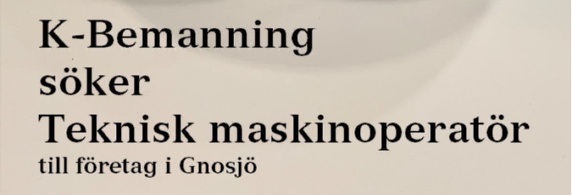 Nu söker vi en teknisk maskinoperatör till intressant företag i Gnosjö