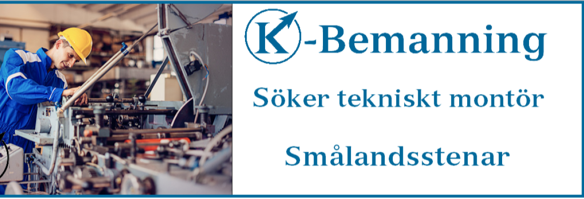 Nu söker K-Bemanning för kunds räkning en TEKNISK MONTÖR till Smålandsstenar.
