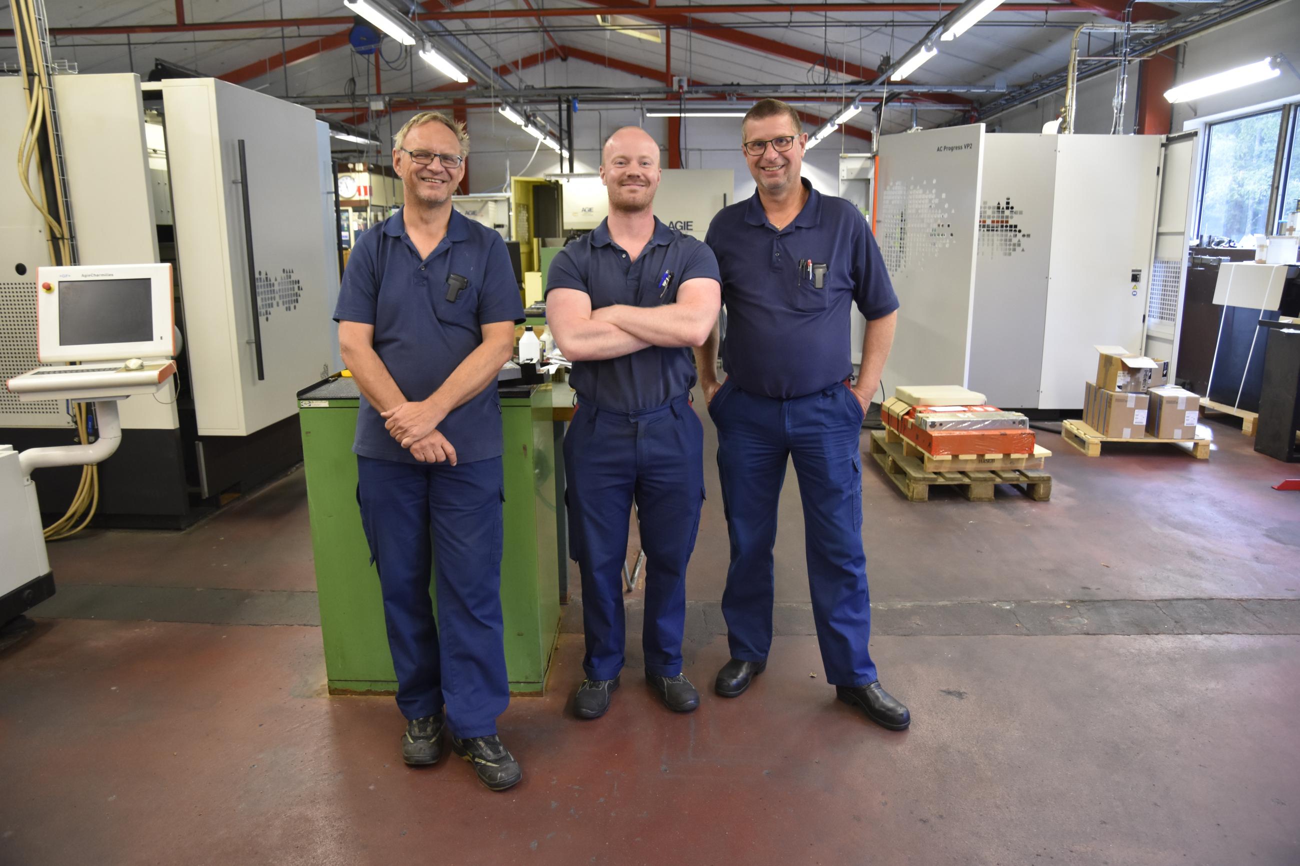 Miform AB tillverkar formverktyg av hög kvalitet med hjälp av den senaste tekniken. Fr v Mauritz Svensson, Christoffer Hyltén och Bengt Svensson.