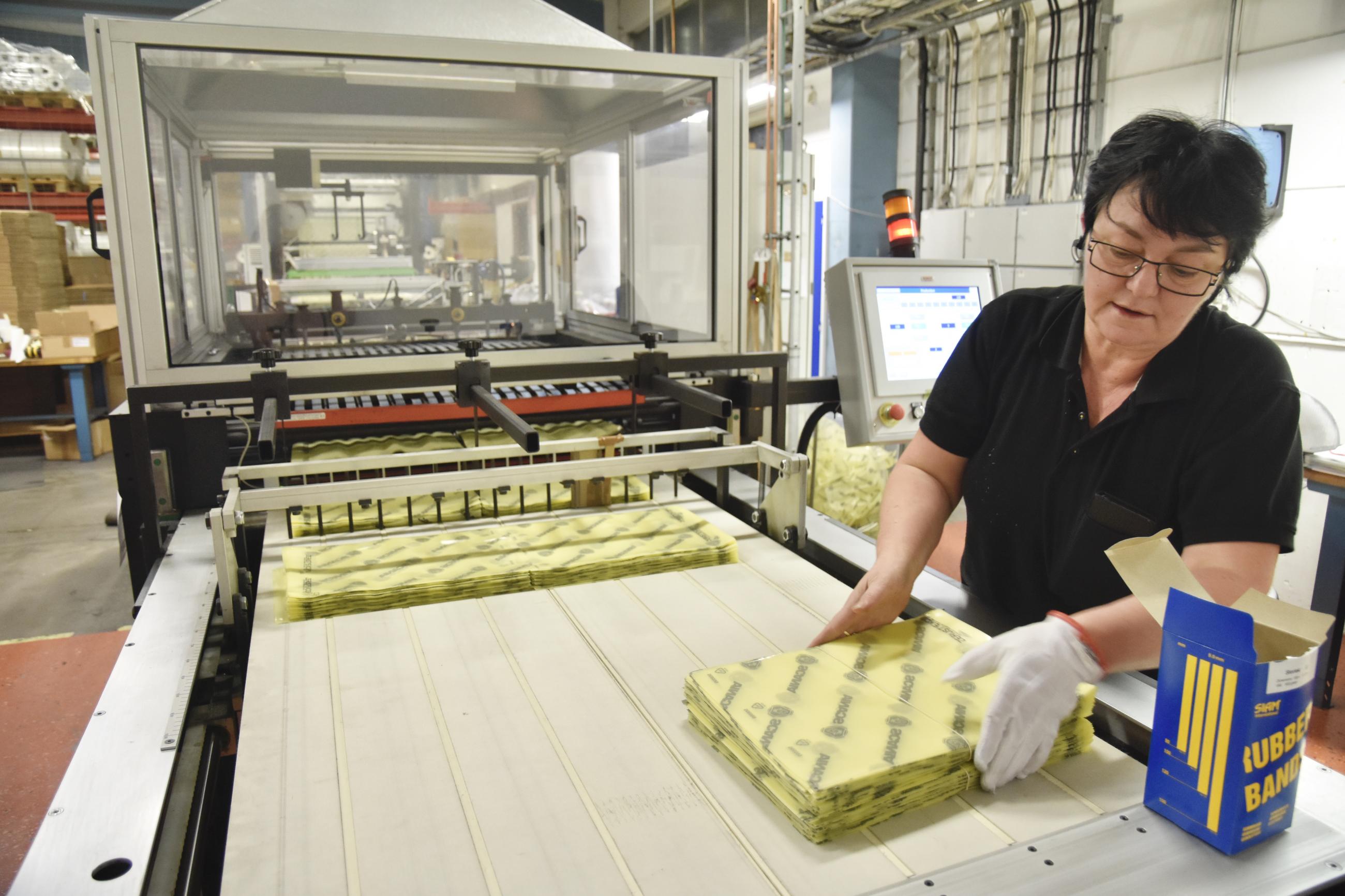 Så även de stora företagens behov. När GnosjoRegion.se kommer på besök pågår precis en körning av klippta, svetsade och tejpförslutna påsar med tryck till en av de större kunderna.