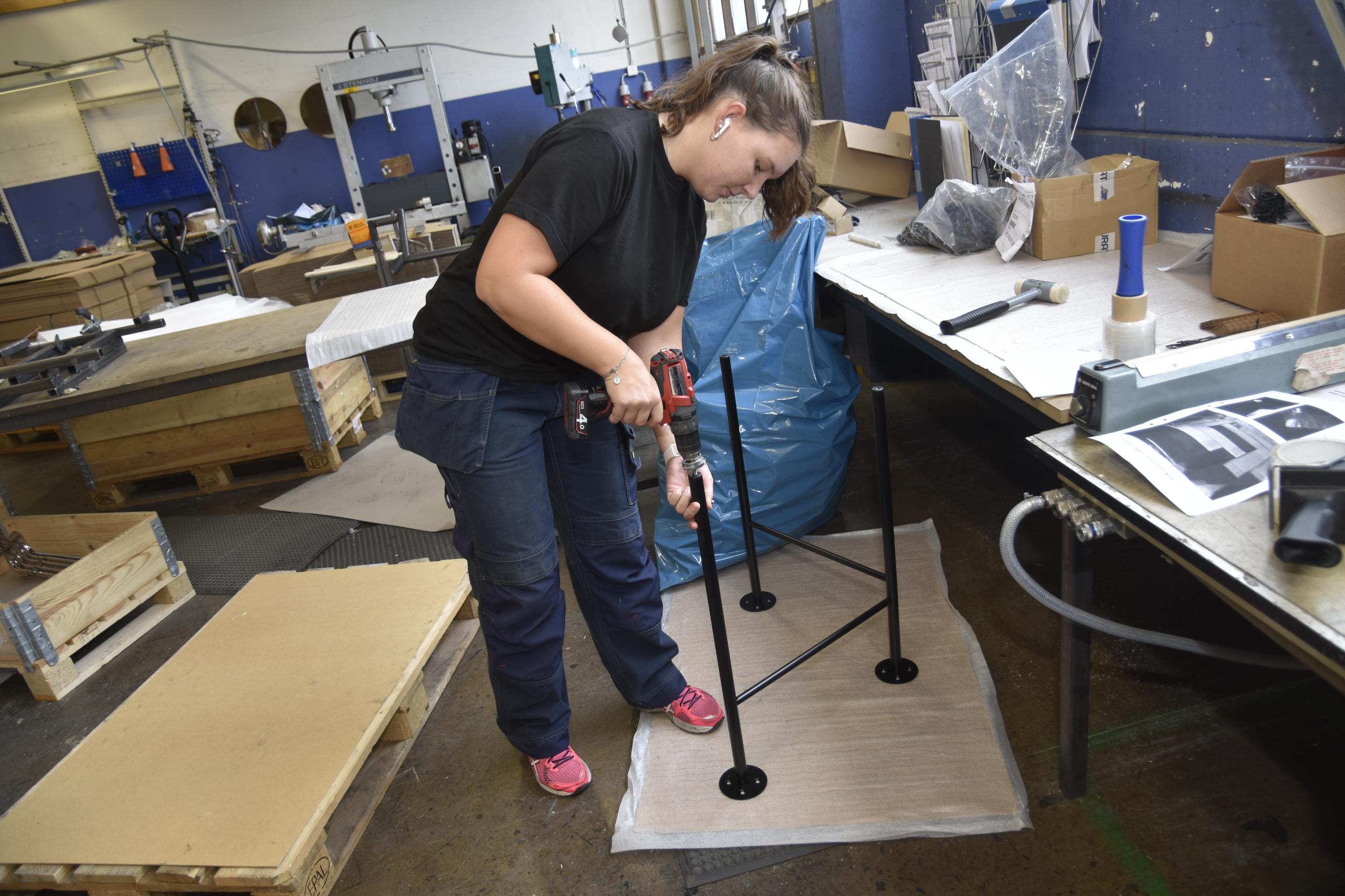 Trenden pekar uppåt för helhetslösningar. Ellen Ljungberg monterar delar till ett bordsunderrede.
