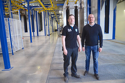 Den nya lackanläggningen är en viktig investering som gynnar både kunder och personal, det konstaterar Anders Guhrén (tv), produktionsledare, och Magnus Davidsson (th), projektledare.