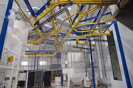 Redan för 20 år sedan gick Troax över till pulverlackering. I den nya lackanläggningen kan man snabbt möta kundens efterfrågan på olika färger.