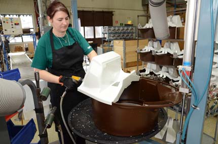 Mull-toa är den dominerande produkten i verksamheten och förutom själva vakuumformningen utför man även montering till färdig slutprodukt. På bilden Taiba vid monteringen.