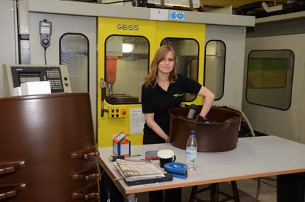 Två nya fräsmaskiner och två nya vakuumformare gör att man nu klarar formytor upp till 2500x1500 mm. I förgrunden Cia-Maria som monterar innerbehållare till förmultningstoalett.