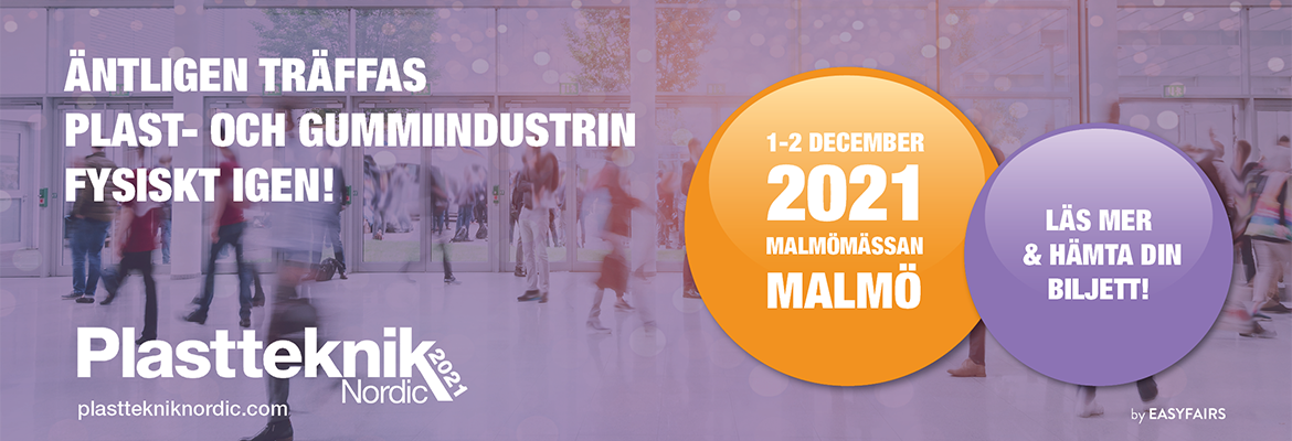Plastteknik Nordic är den självklara mötesplatsen för dig som arbetar inom plast- och gummibearbetningsindustrin. I december 2021 fylls Malmömässan för 11:e gången till bredden under två intensiva dagar fullspäckade av nya spännande möten, innovativa utställarnyheter och inspirerande seminarier med föreläsare från företag som ligger i framkant inom nordisk plastindustri och utbildningsmöjligheter.