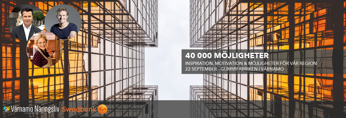 40 000 möjligheter är en inspirationsdag med fokus på möjligheter, trender och influenser som påverkar vårt näringsliv. Syftet med dagen är att skapa en mötesplats för erfarenheter och nätverkande.