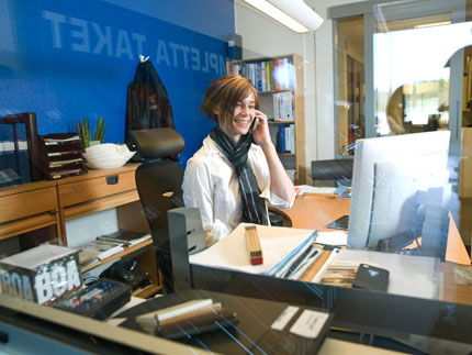 Hon fördelar sin tid mellan företagets kontor i Gislaved och Jönköping.