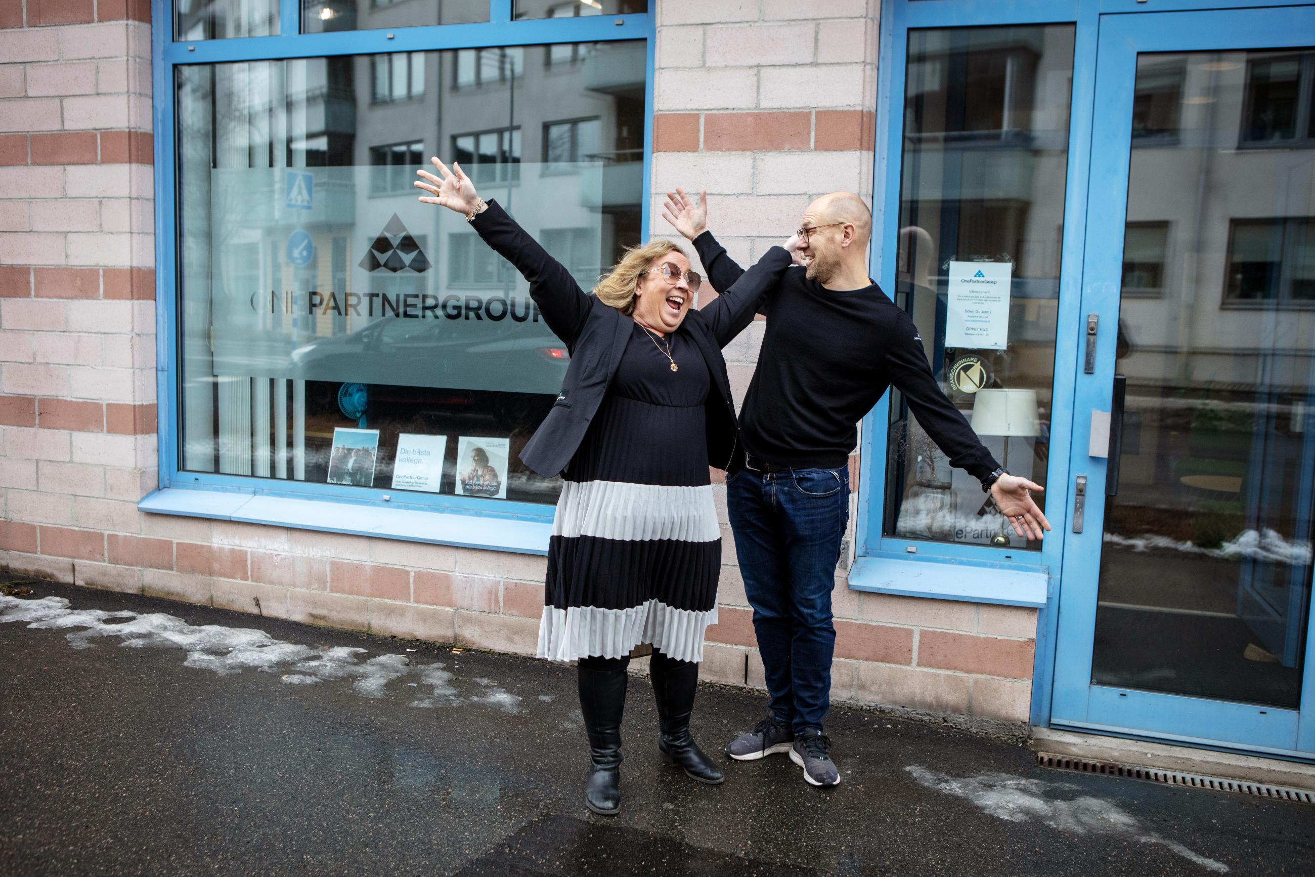 OnePartnerGroup har stark lokal förankring. Delägarna Martin Skogeryd och Jaana Ek lyfter närvaro och människokännedom som avgörande konkurrensfördelar.